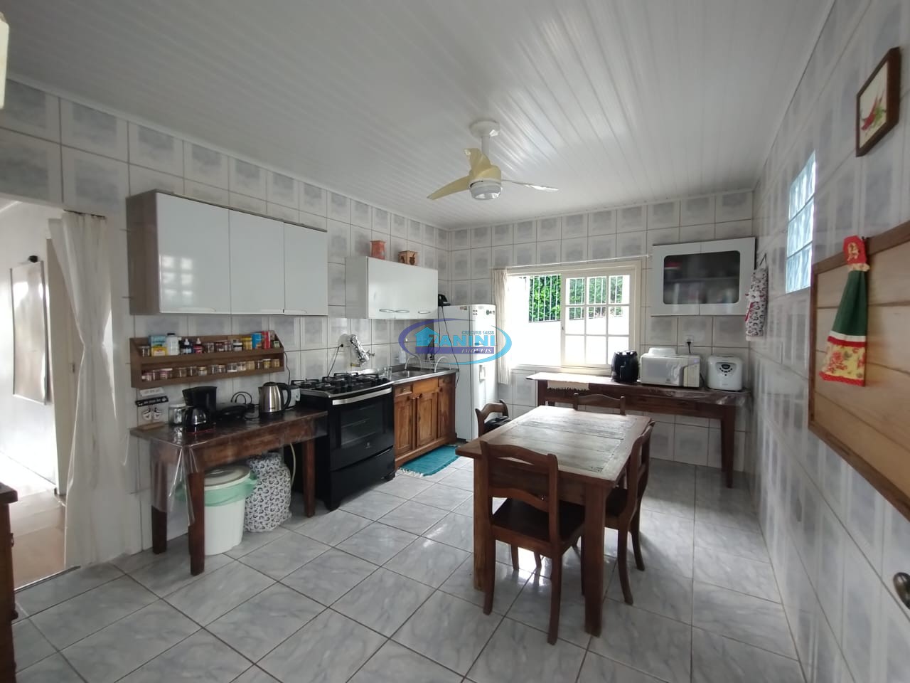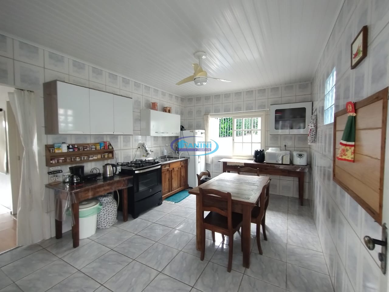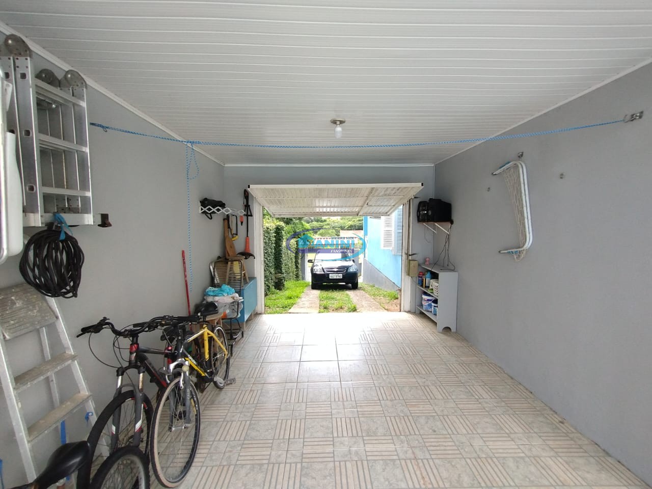 Cozinha com churrasqueira, garagem para dois carros, portão automatizado.